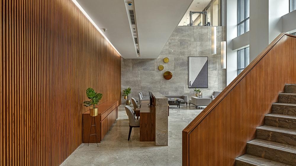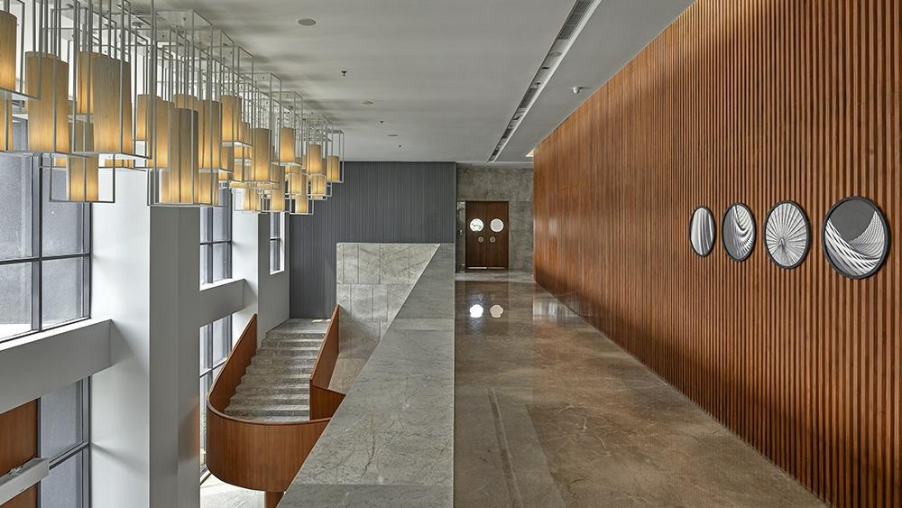 The club caters to a high-end residential development. Play of large volumes and spinal corridors connect the various functional spaces of the club. With a central theme connecting the various spaces, the interiors aim to evoke a subtle sense of luxury.