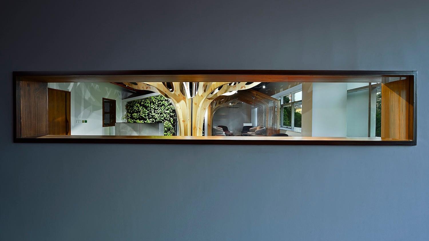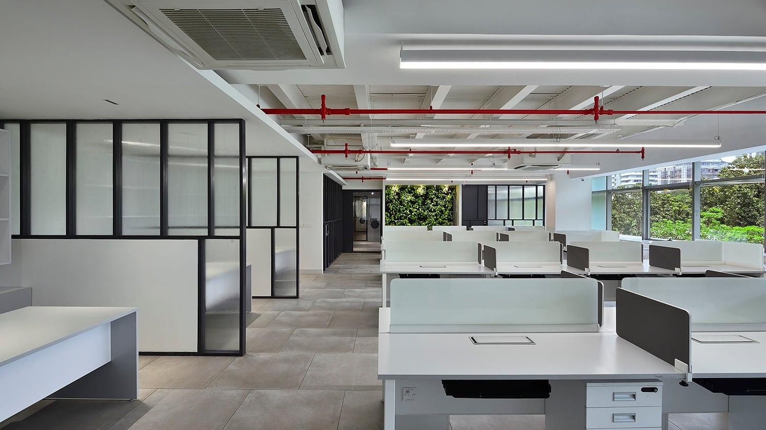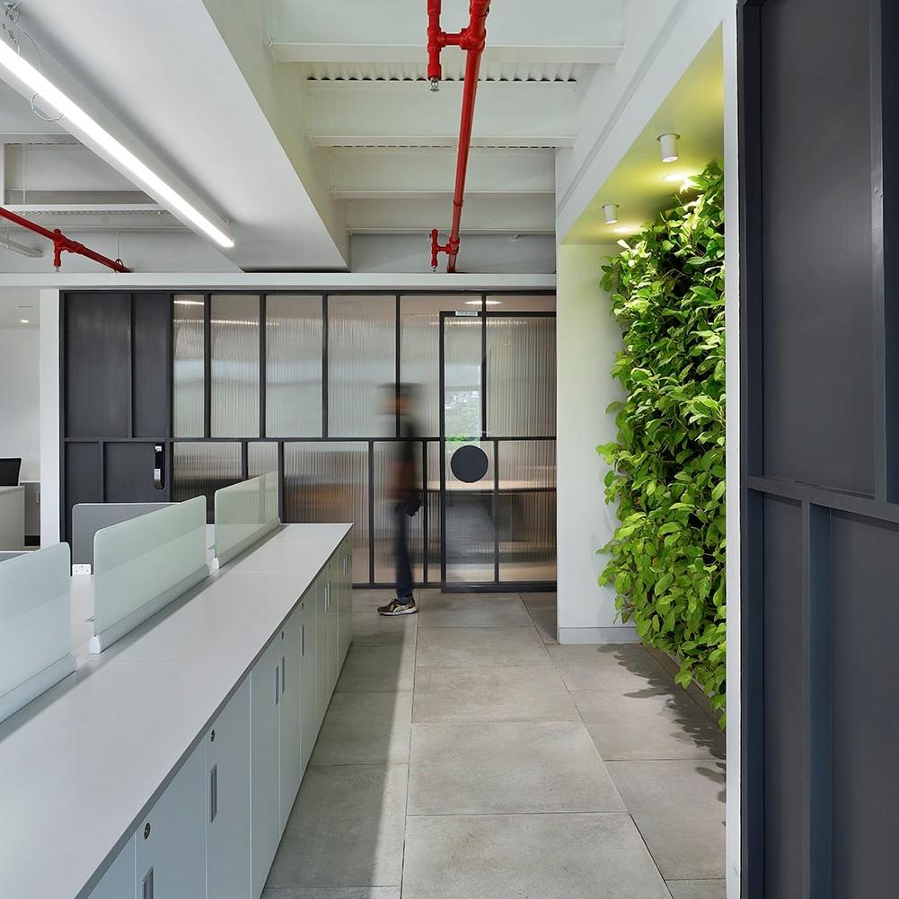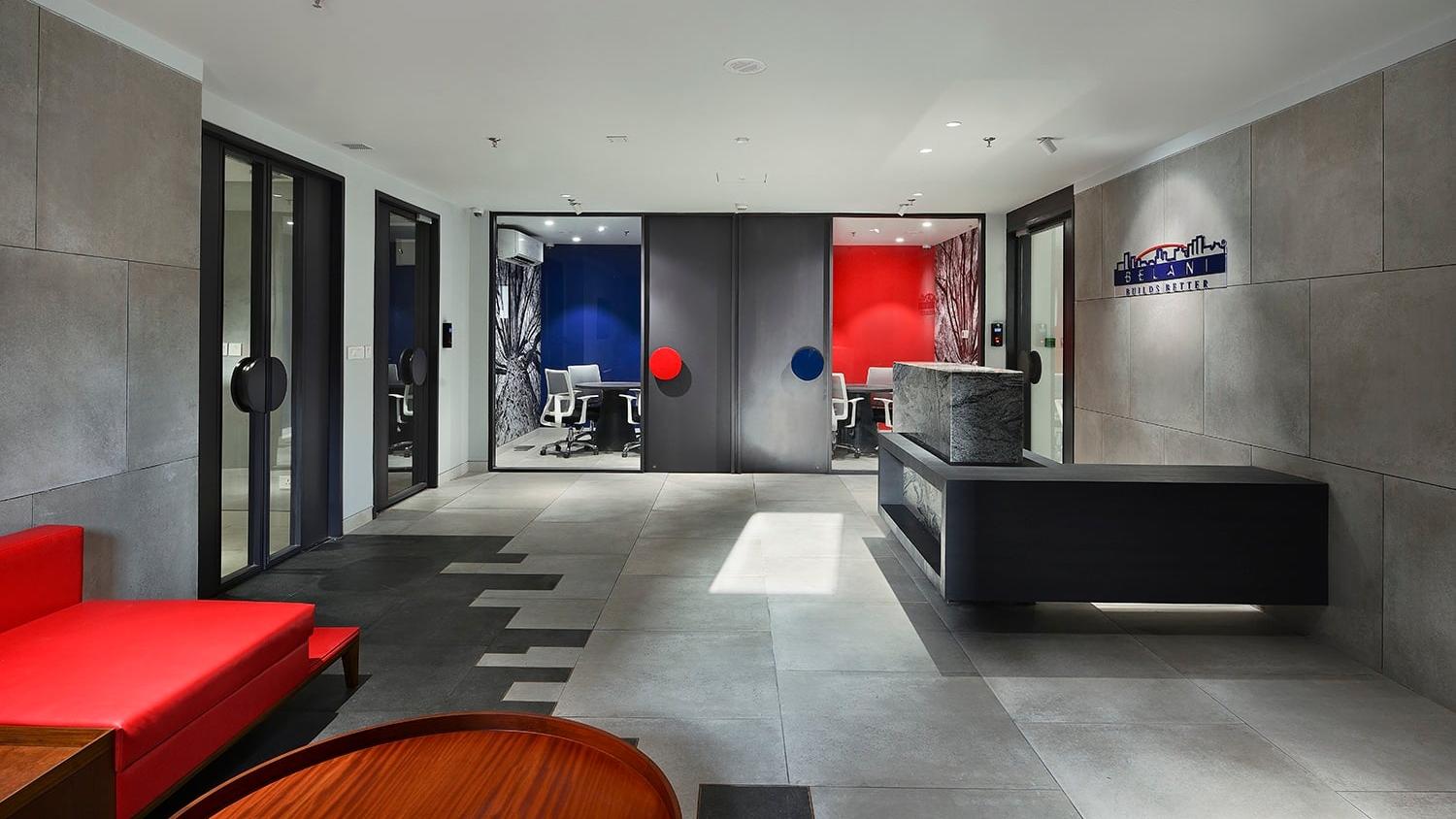 The office comprises three main zones, namely: The formal reception leading to the Workspace, the Chairman's Enclosure with its separate access, and the Customer Interaction Lounge.