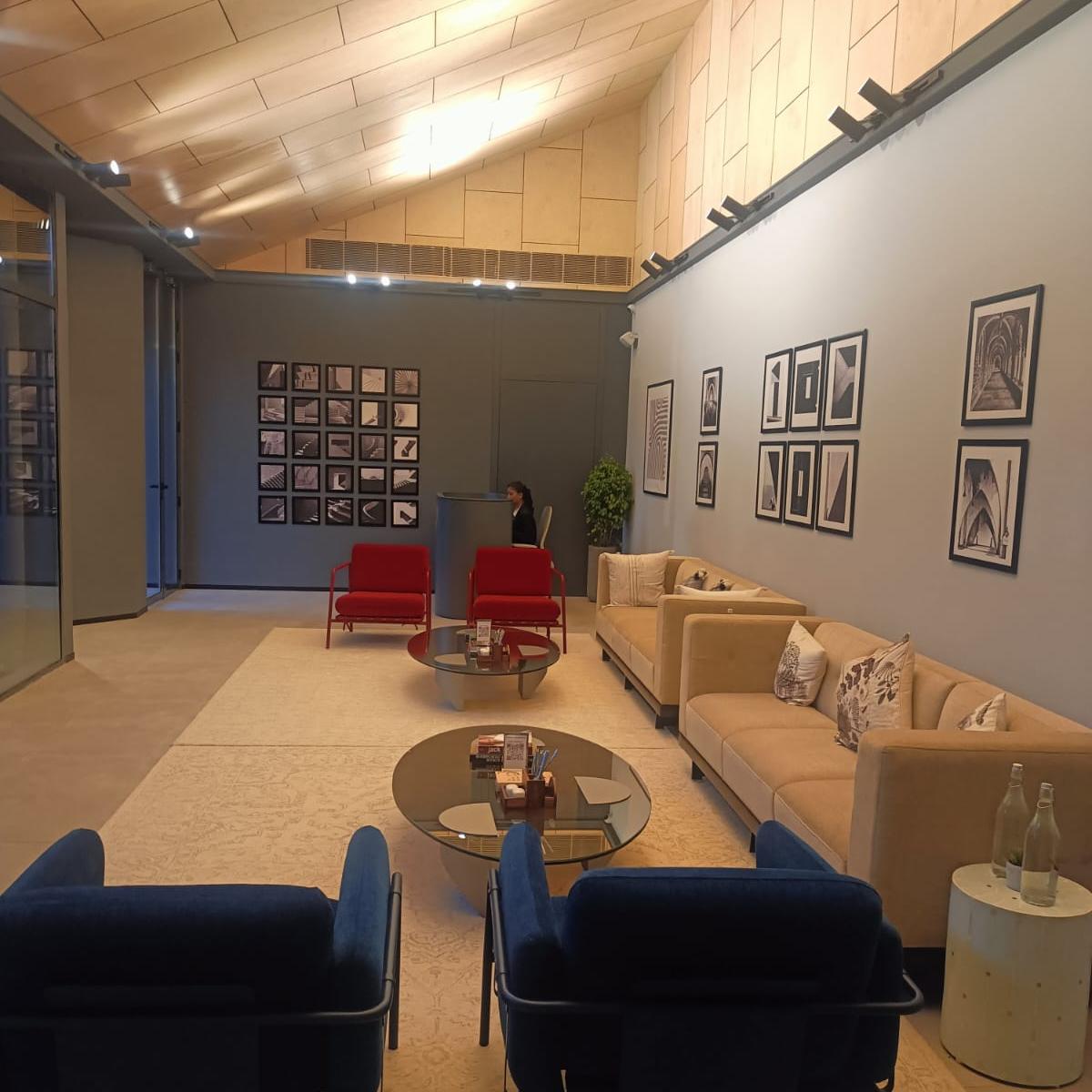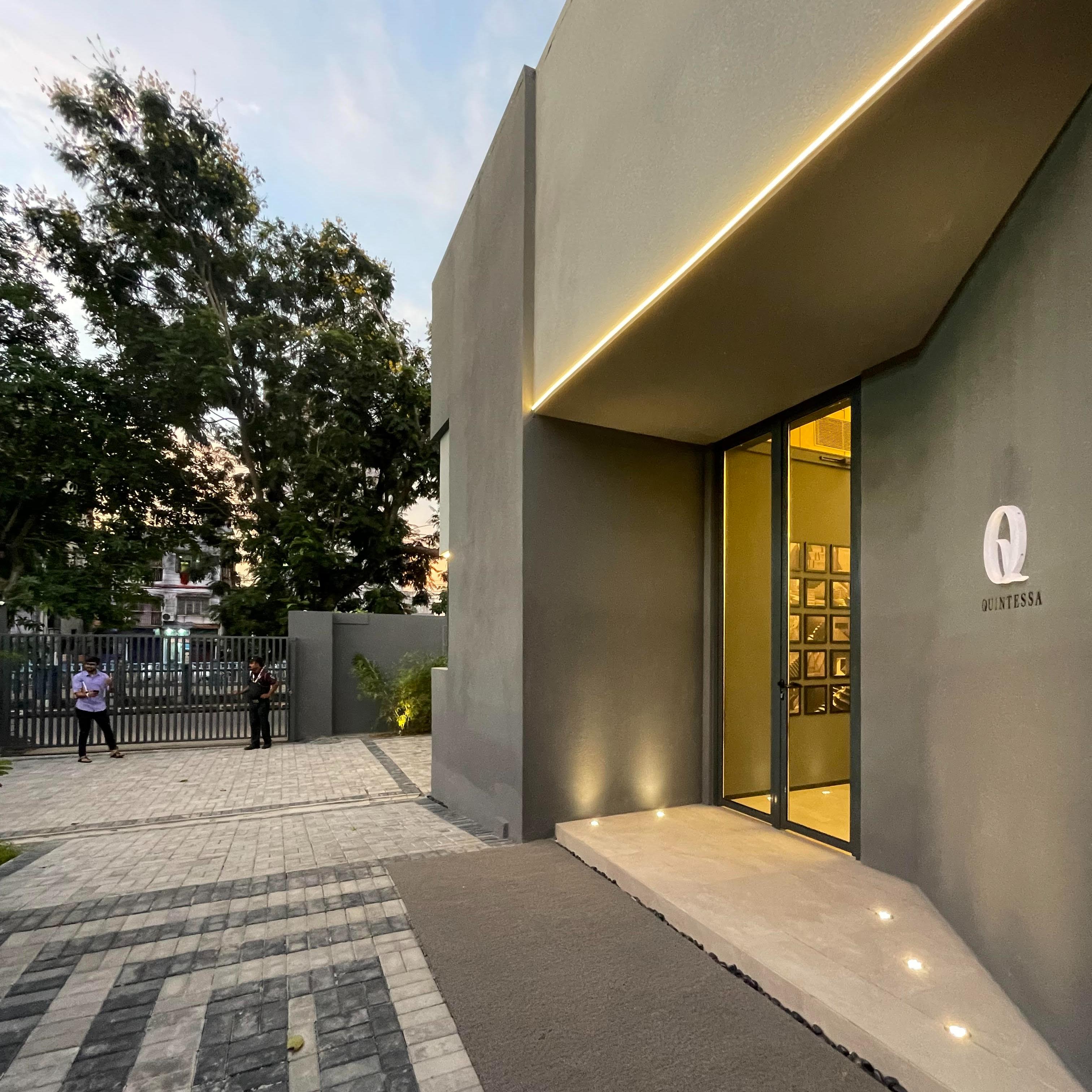 Nestled in a compact corner at the entrance of a large residential real estate project in northern Kolkata, the marketing office stands as a testament to innovative architectural design within constrained spaces. The site, restricted by a small footprint,