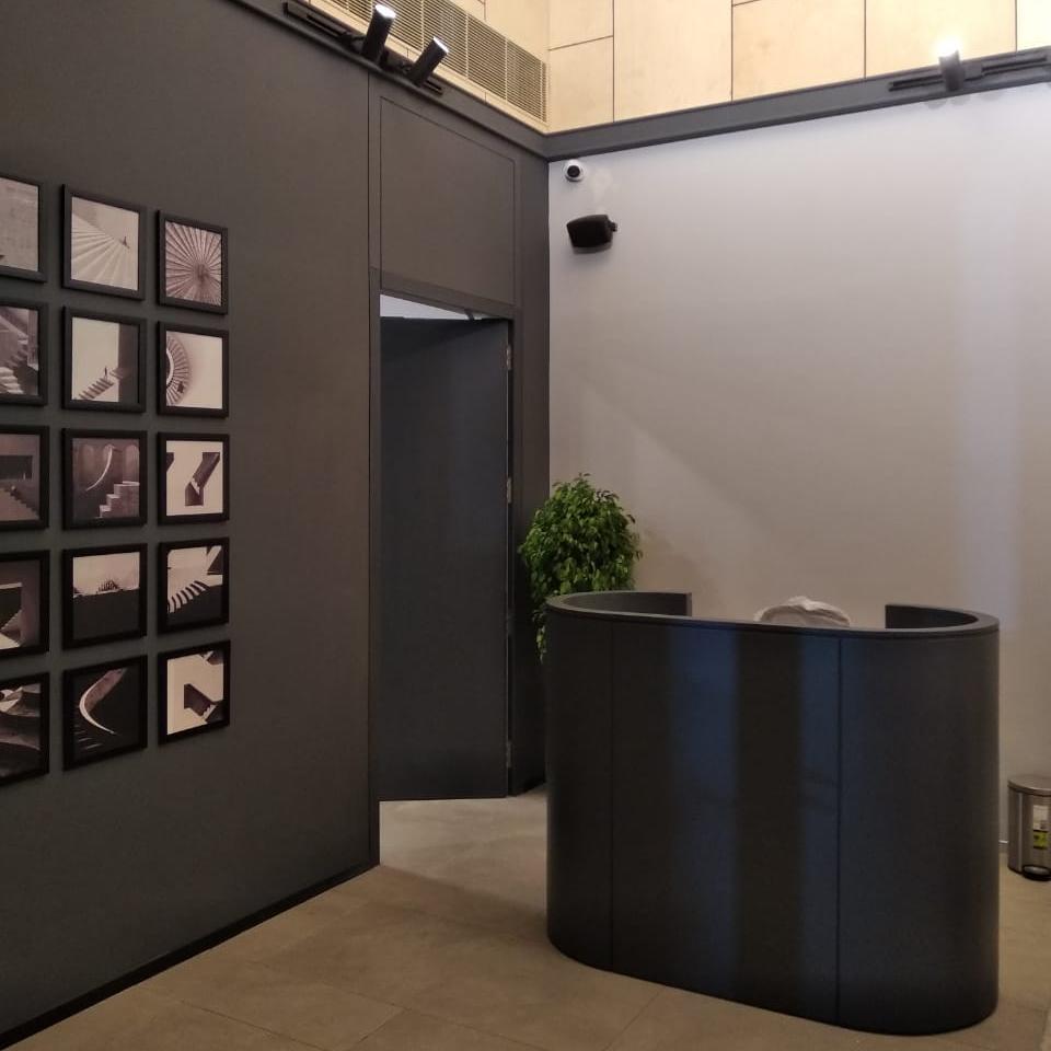 The soffit in the lounge area is clad in warm-toned birch plywood, offering a cozy and welcoming atmosphere. The minimalist design approach ensures that the furniture remains the focal point, with subdued artworks and flooring complementing the overall aesthetic. The marketing office, though small, overcomes spatial challenges through its innovative design and thoughtful use of materials. It serves not only as a functional space but also as an architectural highlight at the entrance of this significant residential development.